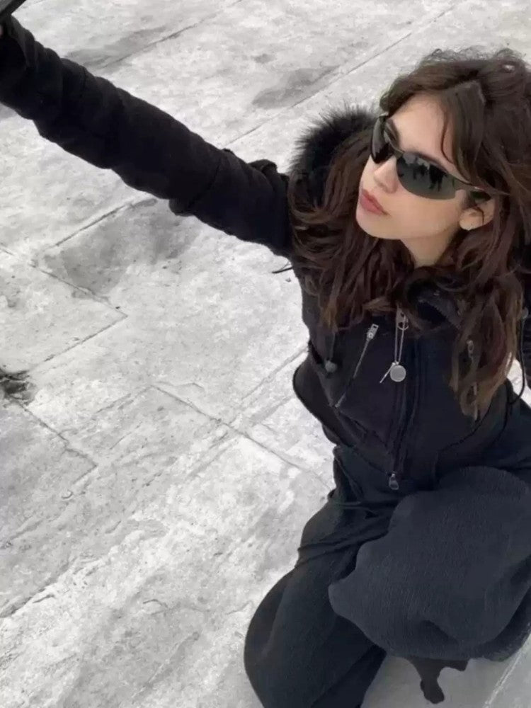 This retro black jacket brings together comfort and edgy style with its cropped cut and dramatic fur collar hood. The slim fit and zippered details create a bold streetwear vibe, perfect for layering during cool days and night outings.