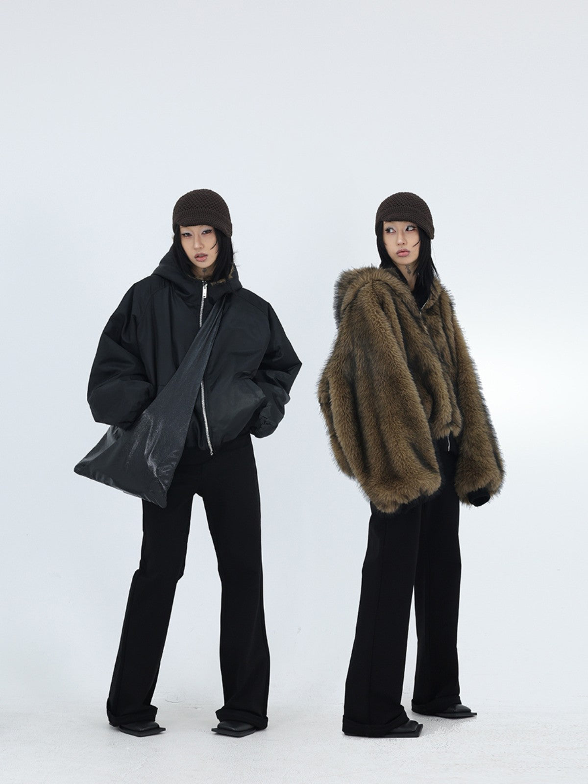 Stay effortlessly warm and stylish with this reversible plush jacket. Crafted for comfort and sustainability, it features a waterproof shell and eco-friendly faux fur for ultimate winter versatility.